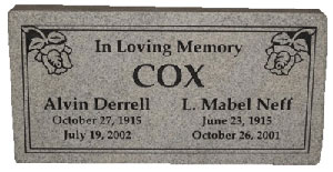The Flat Marker is the most economical type one will find. Flat Markers lay flat on the ground and come in a number of sizes and colors. Our prices start at $225, shipping included. The lower price tag does not mean lower quality. These Markers will beautifully mark the resting place of a loved one for centuries to come.